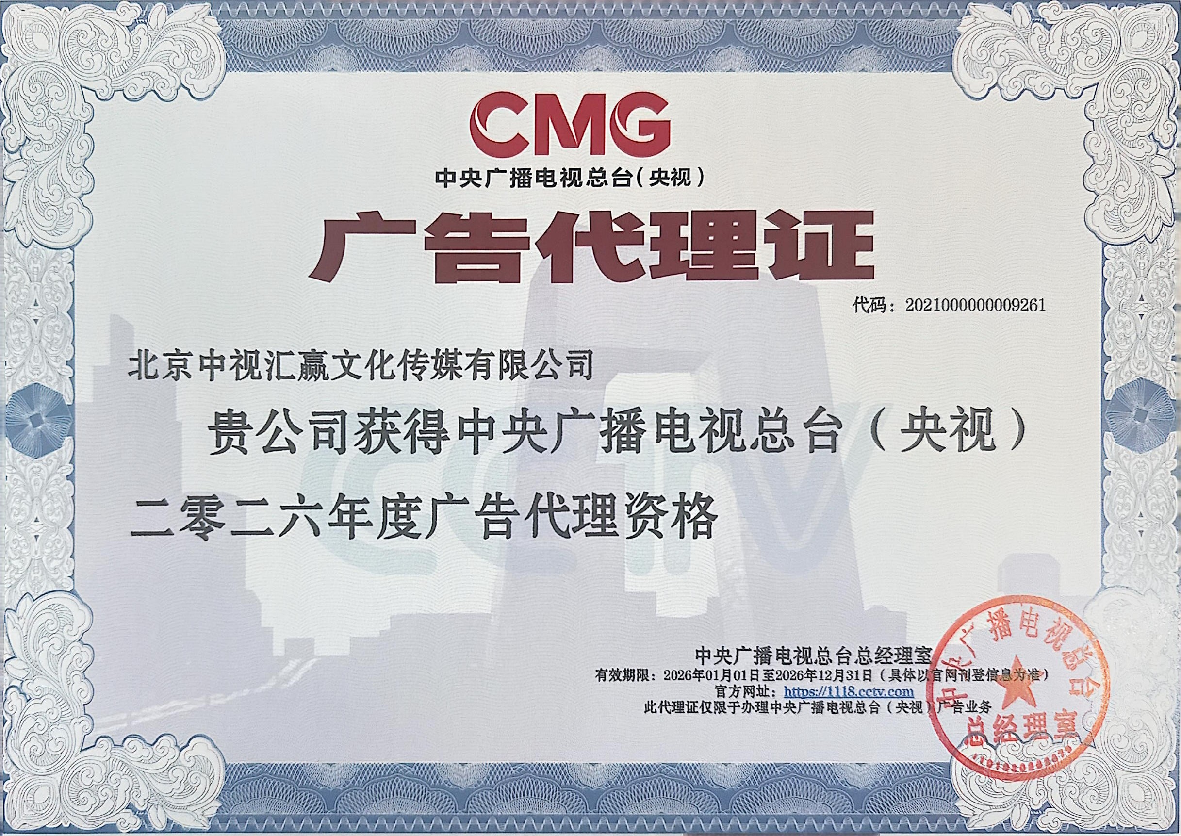 中视汇赢,全称“北京中视汇赢文化传媒有限公司”,中国中央电视台授权的全频道广告代理机构(资质号:2021000000009261),全国优秀的电视媒体广告投放机构。